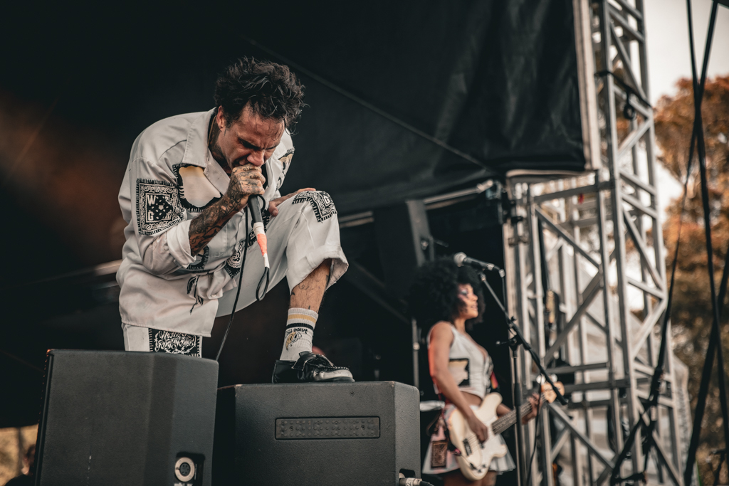 Utilising every square inch of the stage, Butler running about like a man on speed, as they played through “BITE BACK”, “SWING”, the politically charged “Made An America” and a cover of Blur’s “Song 2”. Bassist April Kae is just as energetic, fist pumping between funky bass lines and blasts of EDM and screams. Closer “Hunting Season” sees Butler ascend the stage rigging, finishing the song from up high.